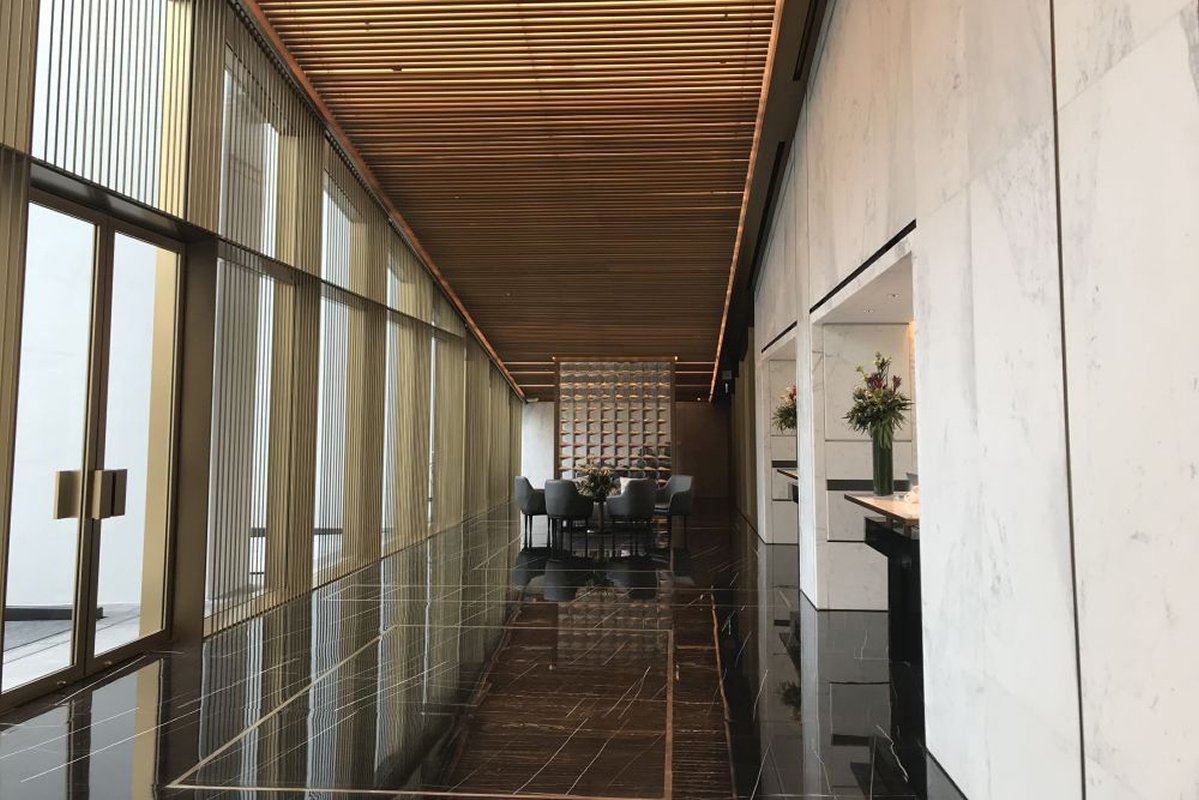 值得一提的是,已有百年歷史、見證美利大廈落成和今日重建後的一棵古樹「節果決明」,座落於酒店大堂對出空地。這棵昔日在停車場一柱擎天的古樹現時貫穿酒店前院和平台兩層,較以往更易吸收陽光。我知道這棵古樹從前的健康狀況一般,發展商特別在施工期間悉心照料,確保其不受影響,現在已長出茂盛的樹葉和花朵,為這座獨特的建築添上姿采和新氣色。凌女士表示,酒店額外加入一些綠化元素,希望將這裏打造成中環的一片綠洲。
