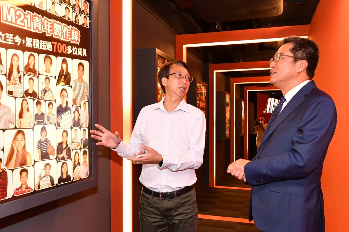 其後,他到訪青年協會設立的青年多媒體平台M21,了解其設施和發展方向。M21設網上電視和電台製作室等多元媒體設備以供租用,並舉辦課程培育多媒體製作人才。