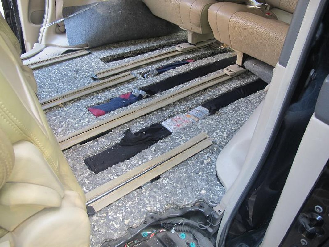 海關人員在沙頭角管制站一輛出境私家車的地毯下檢獲走私電腦中央處理器。