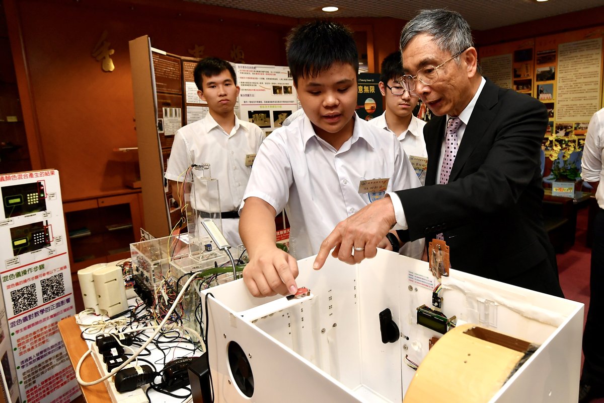 他其後到訪將軍澳香島中學,了解該校的STEM(科學、科技、工程、數學)相關項目,觀看可載人太陽能車操作示範,並鼓勵學生發揮創意潛能和作多元發展。