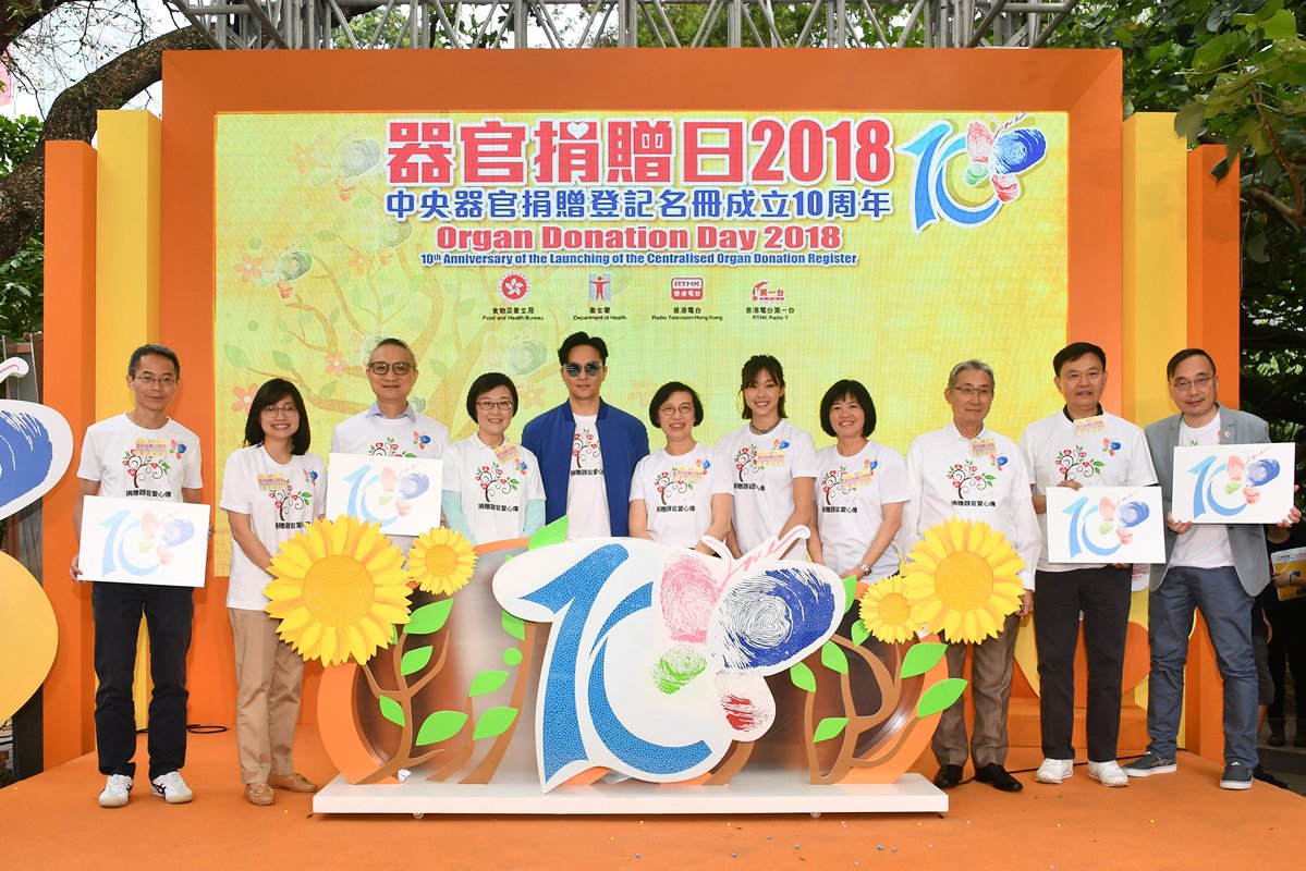 中央器官捐贈登記名冊成立十周年,食物及衞生局、衞生署和香港電台今日舉行慶典,同時慶祝器官捐贈日2018。