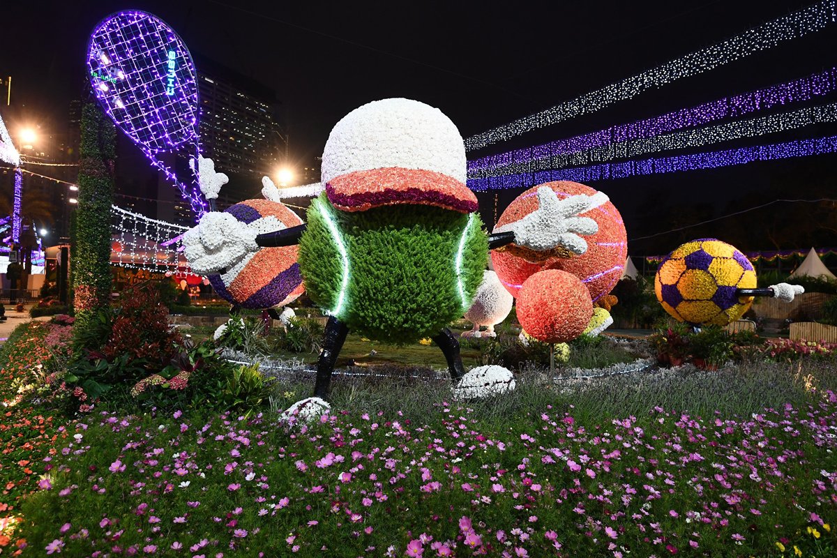 以大紅花為主角的花牆、鬱金香花海和守護許願球的小仙子勢成賞花拍照熱點,另一大型花壇則以運動會為主題,展示第七屆全港運動會的八個體育項目。