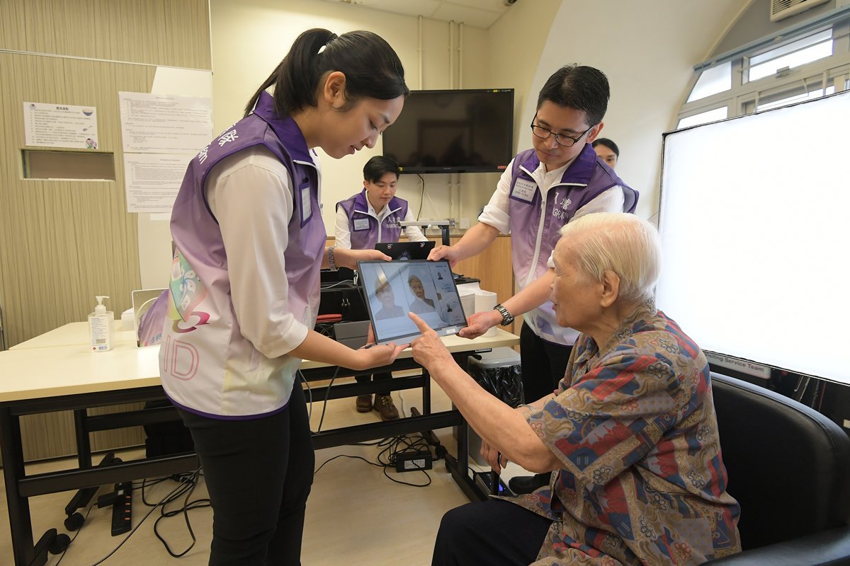 為確保身份證相片質素,外展隊會為長者準備反光板,又在相機鏡頭上方套上「壽星公」圖像,以便長者辨識鏡頭位置。新證印製完成後,入境處會安排送到院舍。