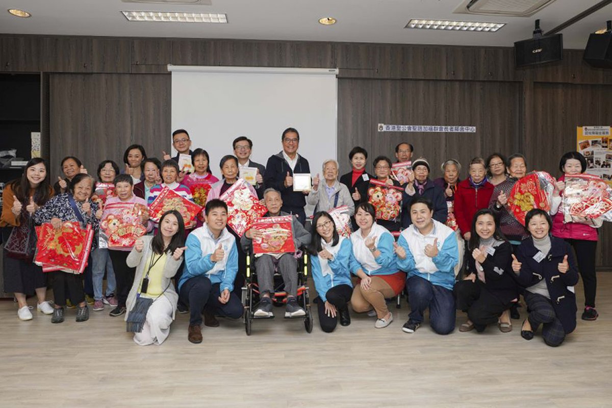 渠務署義工隊2017年發起「愛.與耆義同行 」,夥拍退休長者(簡稱「耆義」),進行義務工作,定期探訪堅尼地城觀龍樓一帶的獨居長者,為他們送上愛與關懷。我們今次探訪的是香港聖公會聖路加福群會長者鄰舍中心。探訪當天,我們和老友記一起玩了多款桌上遊戲,公公婆婆都充滿活力,玩得十分開心。我們向老友記送贈鼠年揮春,並互相送上賀年祝福。我們亦參觀了院舍設施,觀看烹飪班上堂情況,並與長者玩飛鏢,了解如何透過運動訓練手眼協調。