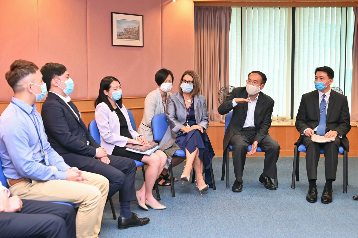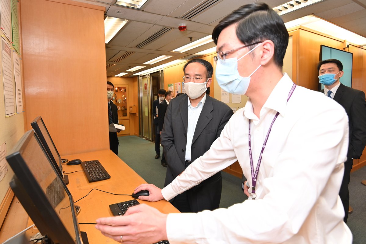 許正宇並會晤部門人員,聽取他們講解工作情況,又感謝他們在疫情下努力為市民提供公共服務。