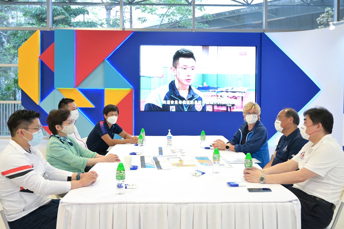 林鄭月娥得悉運動員正全力備戰東京奧運會,至今已取得27個項目的參賽資格,預期最終會參與30多個項目。她期望運動員屆時有突出表現,為港爭光。