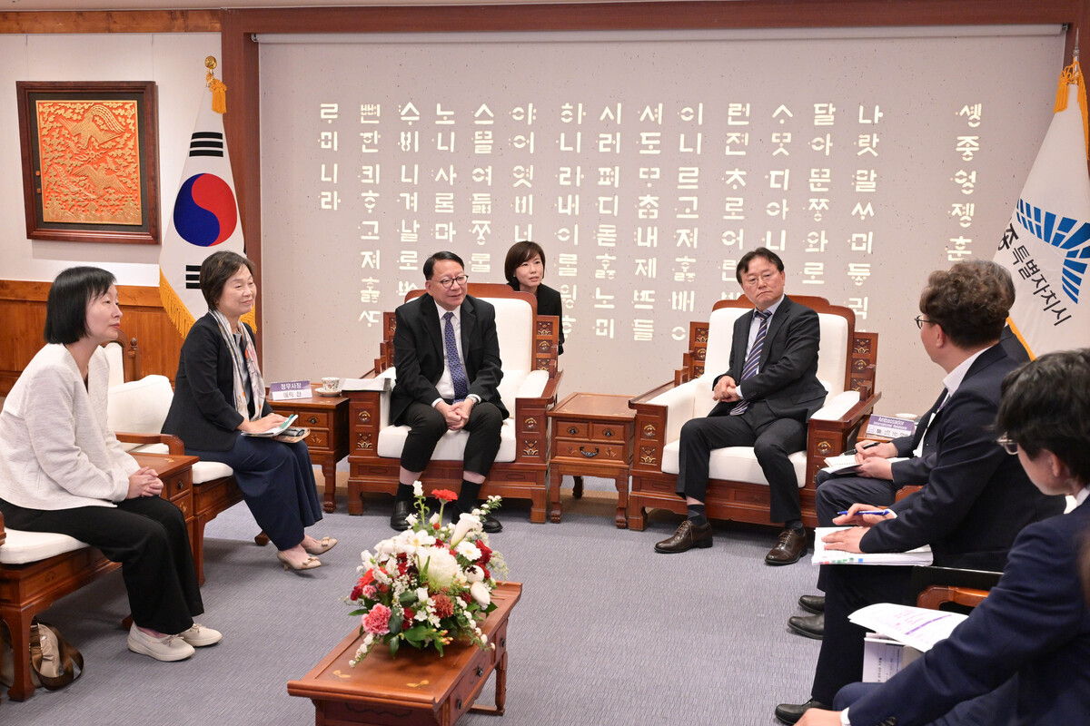 代表團首先與世宗市國際關係大使李湖植會面,聽取當地發展大學共享校區的情況,以及產學研融合和吸引人才的經驗,並就深化兩地的教育領域合作交換意見。