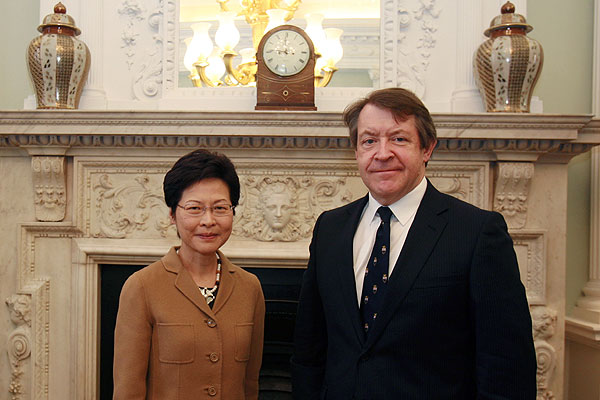 She also met with British Chancellor of the Exchequer George Osborne, and discussed co-operation between Hong Kong and the UK.