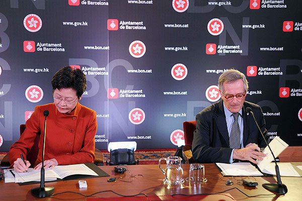 Mrs Lam signed a memorandum of understanding with the mayor, seeking to promote exchanges between Hong Kong and Barcelona in the spheres of urban planning, urban design, infrastructure development and waterfront design. She also toured Barcelona's cityscape.