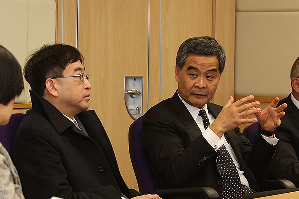 Chief Executive CY Leung visited the Centre for Health Protection today to learn about the safeguards being taken against the Zika virus in Hong Kong, and met with a World Health Organisation representative to discuss prevention and control measures.