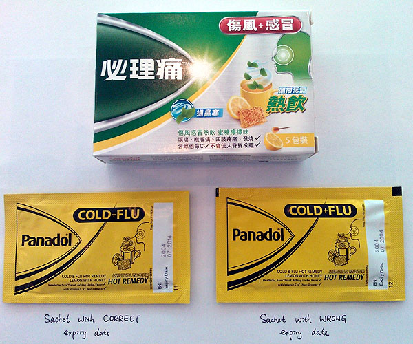 The Department of Health today endorsed GlaxoSmithKline's recall of batch no.2004 of Panadol Cold & Flu Hot Remedy - Lemon with Honey (Registration No.HK-50932), which has the wrong expiry date printed on its sachets.