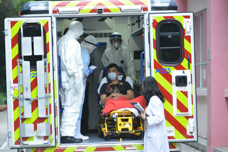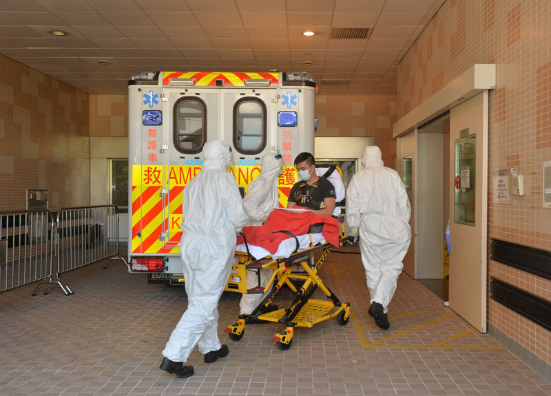The Hospital Authority and Fire Services Department today conducted an exercise simulating the transfer and handling of a suspected Ebola patient.