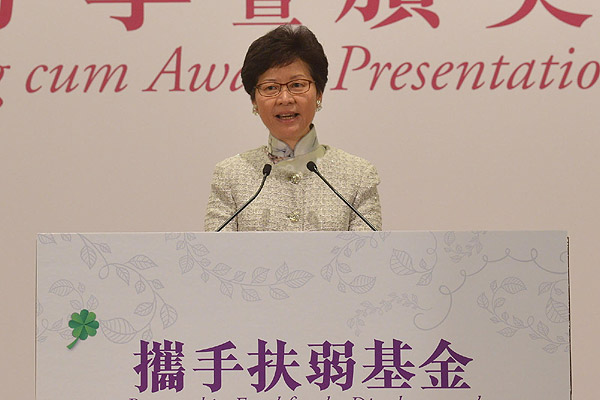 Chief Secretary Carrie Lam officiated at a ceremony today commending 1,000 business corporations, welfare bodies and schools for their participation in the Partnership Fund for the Disadvantaged Project.