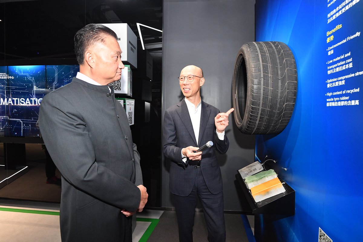 Mr Wong first inspected an indoor air quality disinfection robot and rubberised paving blocks made of waste tyres at the centre.