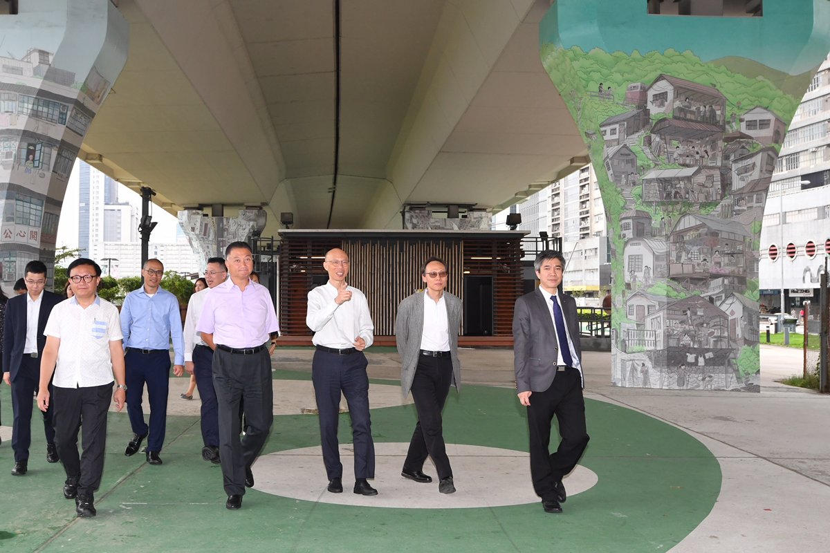Mr Wong then visited the Energizing Kowloon East Office where he was briefed on proof-of-concept green trials for smart city development, including an energy efficiency data management system, a smart recycling bin system and a multi-purpose lamp post with an air quality monitoring device.