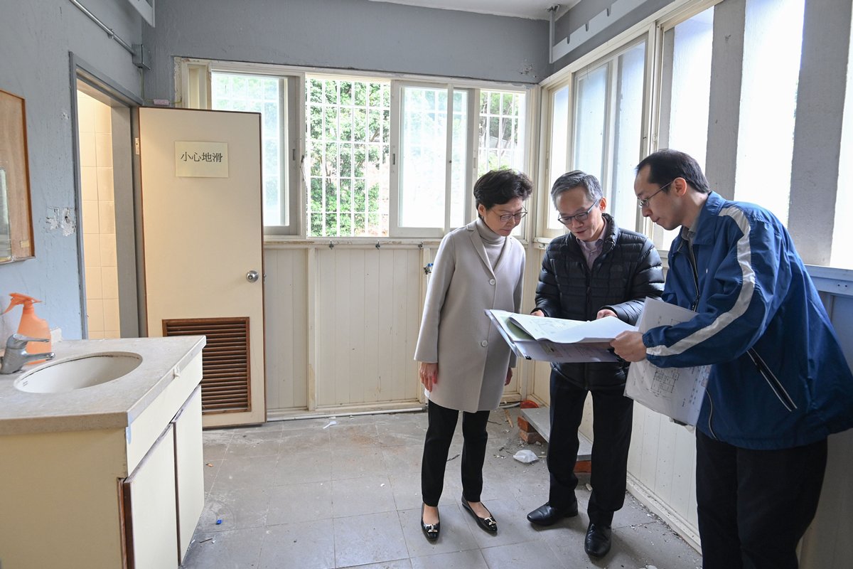 At the Infectious Disease Centre of Princess Margaret Hospital, Mrs Lam was briefed on work to combat the infection and viewed isolation wards under renovation.