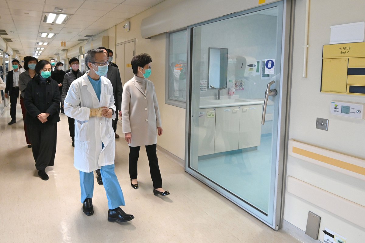Mrs Lam lauded Hospital Authority staff for tackling the virus and paid special tribute to front-line workers caring for patients day and night.