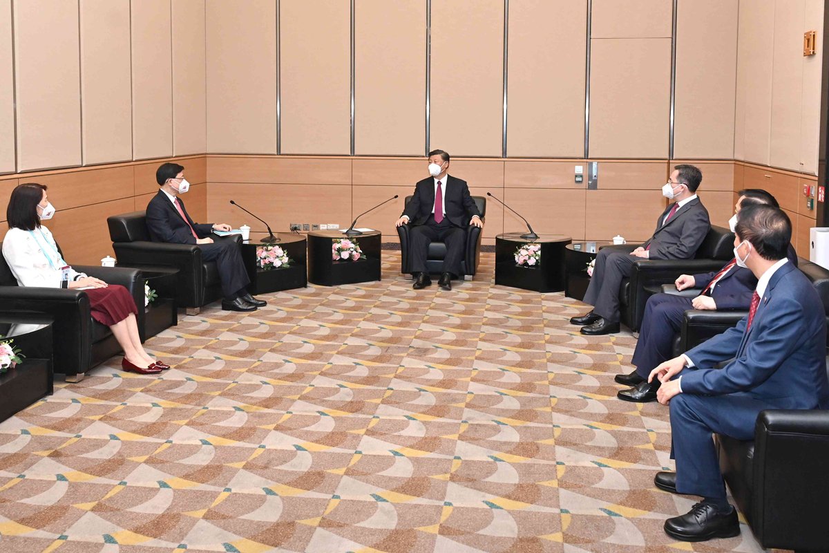 President Xi Jinping met Chief Executive John Lee and members of the executive, the legislature and the judiciary after attending the inaugural ceremony of the sixth-term Hong Kong Special Administrative Region Government today.
