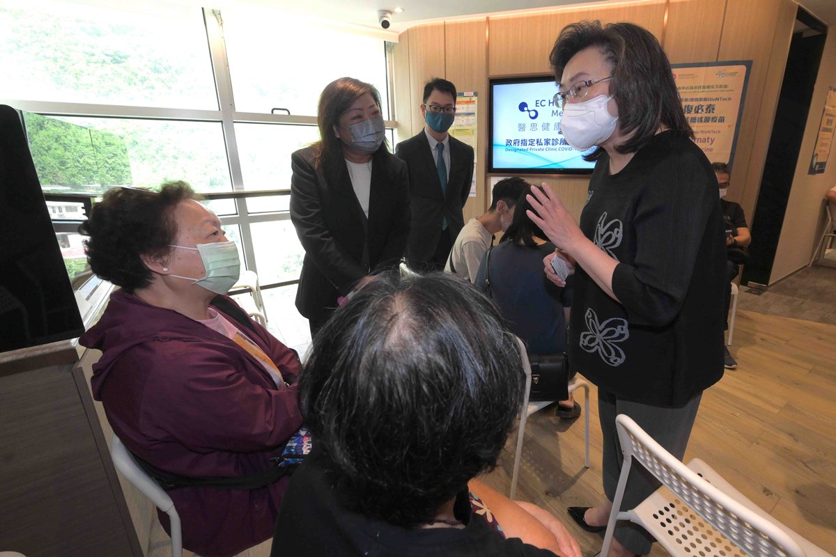 Secretary for the Civil Service Ingrid Yeung today visited the private clinic COVID-19 vaccination stations in Causeway Bay and Sha Tin to observe the concurrent administration of Sinovac and BioNTech vaccines.