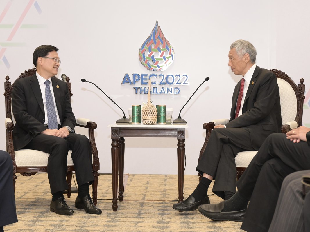 At a bilateral meeting with Prime Minister of Singapore Lee Hsien Loong, the Chief Executive noted that Singapore is an important trading partner of Hong Kong and welcomed Singaporean businesses to partner with Hong Kong to tap into the vast opportunities presented by the Greater Bay Area and Belt & Road Initiative.