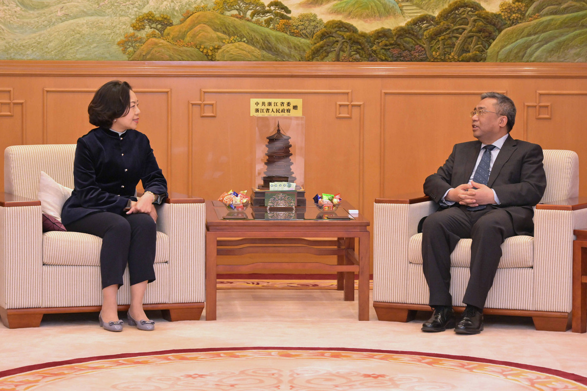 Joined by Commissioner for Youth Wallace Lau, Miss Mak met OCMFA Deputy Commissioner Yang Yirui during the visit.