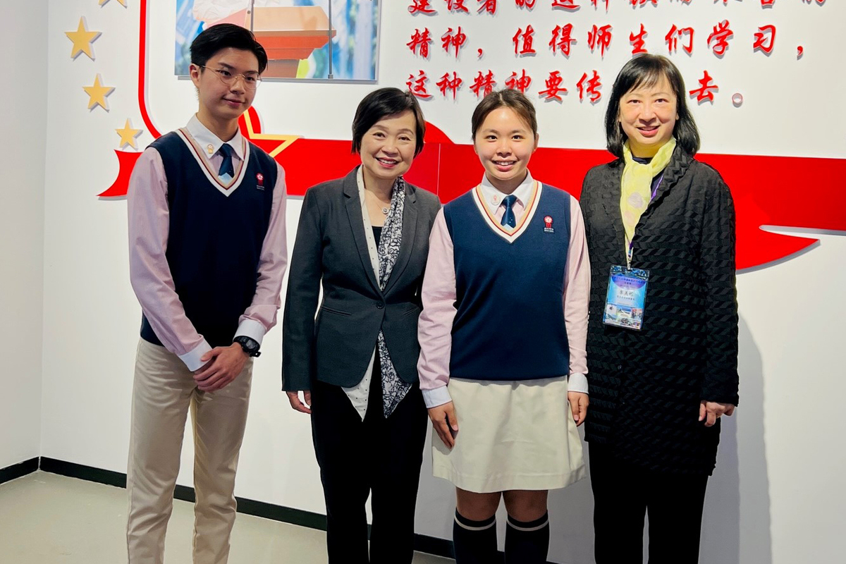 Secretary for Education Choi Yuk-lin (second left) meets student ambassadors of Minxin Hong Kong School (Guangzhou Nansha).