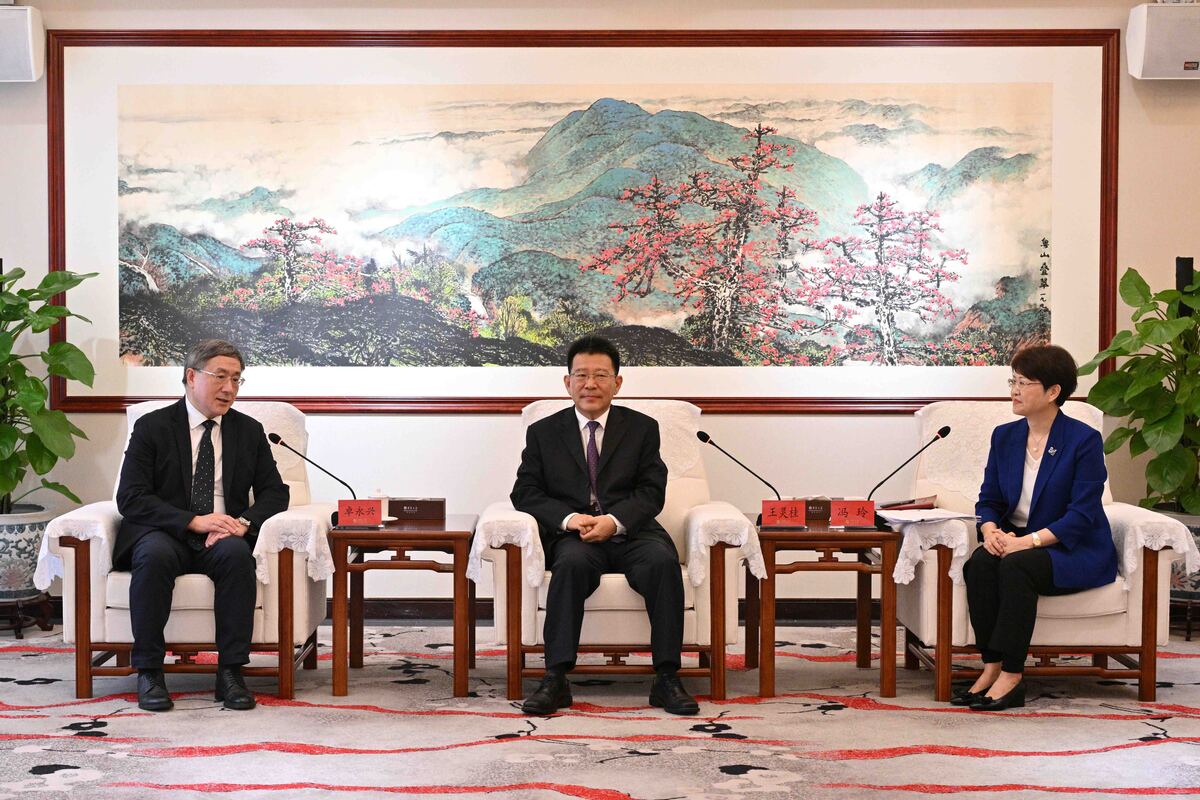 Mr Cheuk first met Hong Kong & Macao Affairs Office (HKMAO) of the State Council Deputy Director Wang Linggui and Guangdong Vice-Governor Feng Ling to exchange views on deepening the co-operation between Guangdong and Hong Kong, and promoting the development of the Guangdong-Hong Kong-Macao Greater Bay Area (GBA).