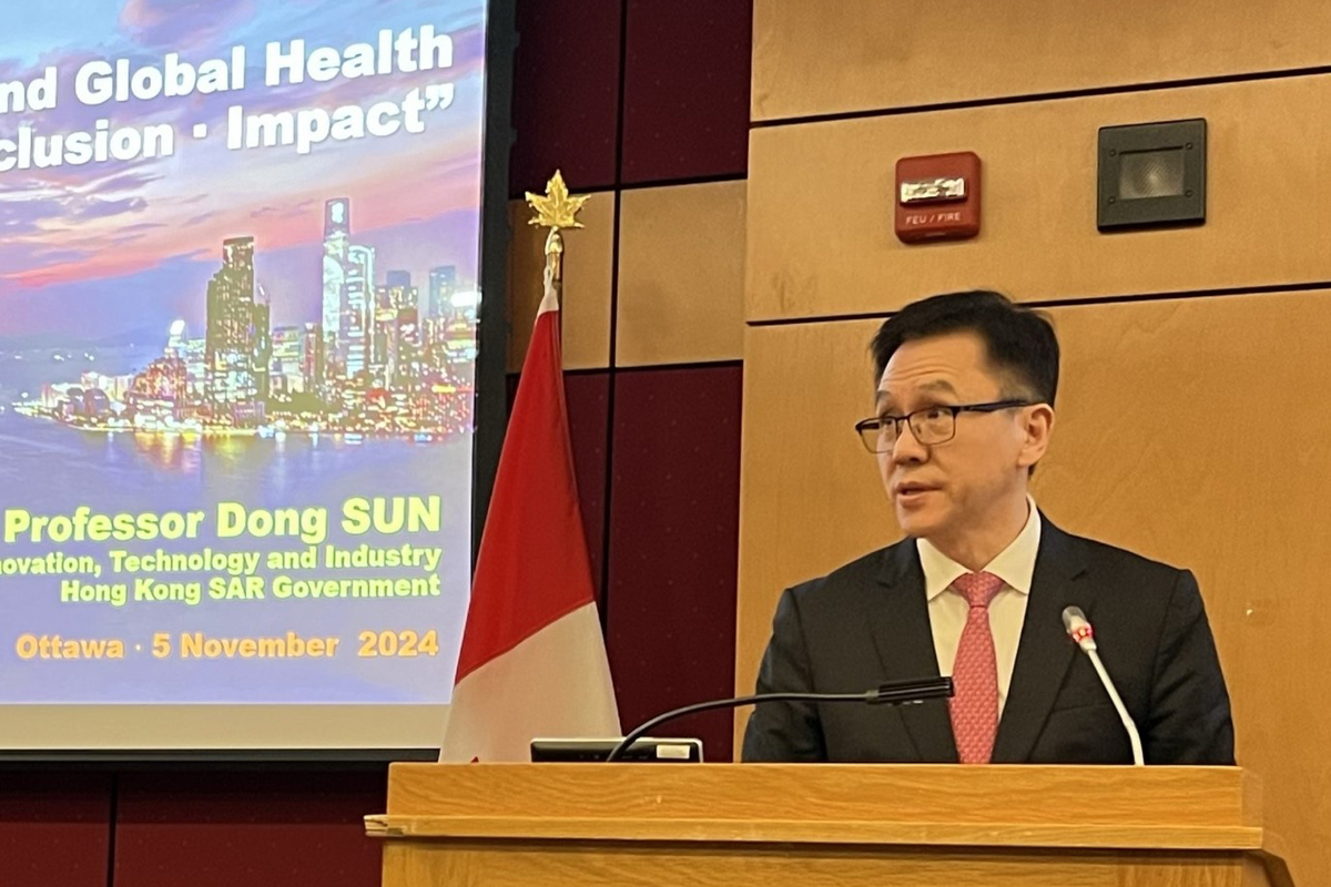 Continuing a visit to Canada, Secretary for Innovation, Technology & Industry Prof Sun Dong delivered a keynote speech at a Seminar on Life Science & Global Health, held at the Parliament Building in Ottawa.