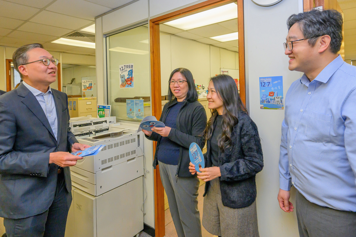 Financial Secretary Paul Chan, Secretary for Justice Paul Lam, and Secretary for the Civil Service Ingrid Yeung visited government offices in Wan Chai today to call on civil servants to vote in the Legislative Council Election on December 7.