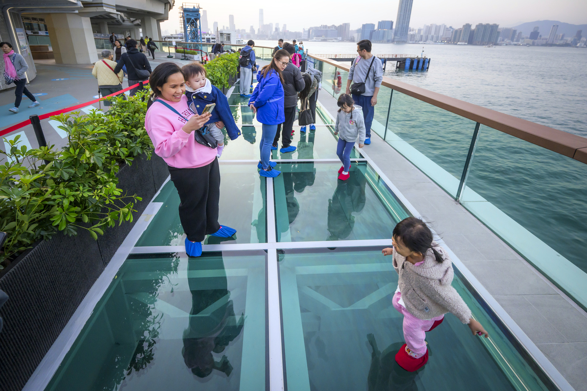 Civil Engineering & Development Department Senior Engineer Terence Yeung explained that besides functioning as a dedicated walkway for pedestrians, it offers a number of special features, including an “experiential” glass observatory deck that gives visitors direct views of the harbour beneath the boardwalk.