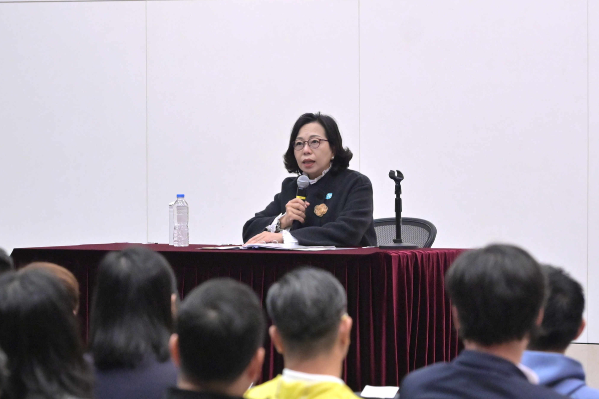 Miss Mak shared the Government's handling of the fire, in particular areas under the purview of the HYAB team. These included immediately opening community halls as temporary shelters, mobilising care teams to assist residents, helping with the receipt and distribution of supplies and the disbursement of emergency subsidies, establishing the Support Fund for Wang Fuk Court in Tai Po to render assistance to residents of Wang Fuk Court and support various related initiatives, and co-ordinating with operators of hotels and youth hostels/camps to provide emergency short-term accommodation for the residents.