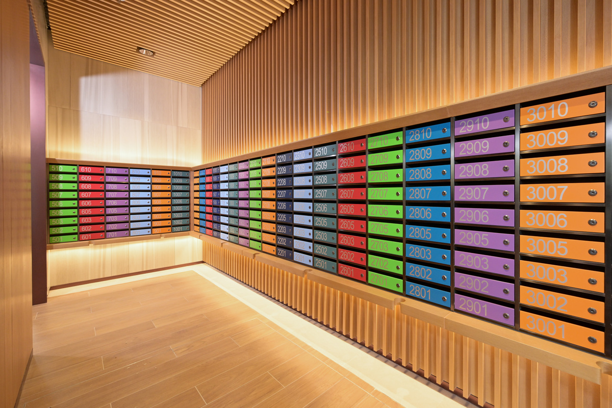 For an elderly resident living on the 8th floor, for instance, a distinct light-blue colour serves as an intuitive guide. Whether they are collecting mail or returning home, these vivid cues let residents know they are in the right place.