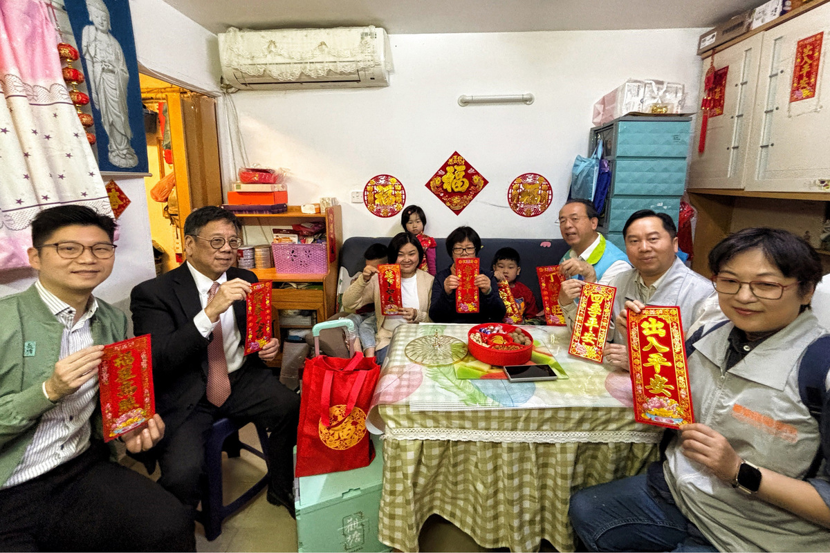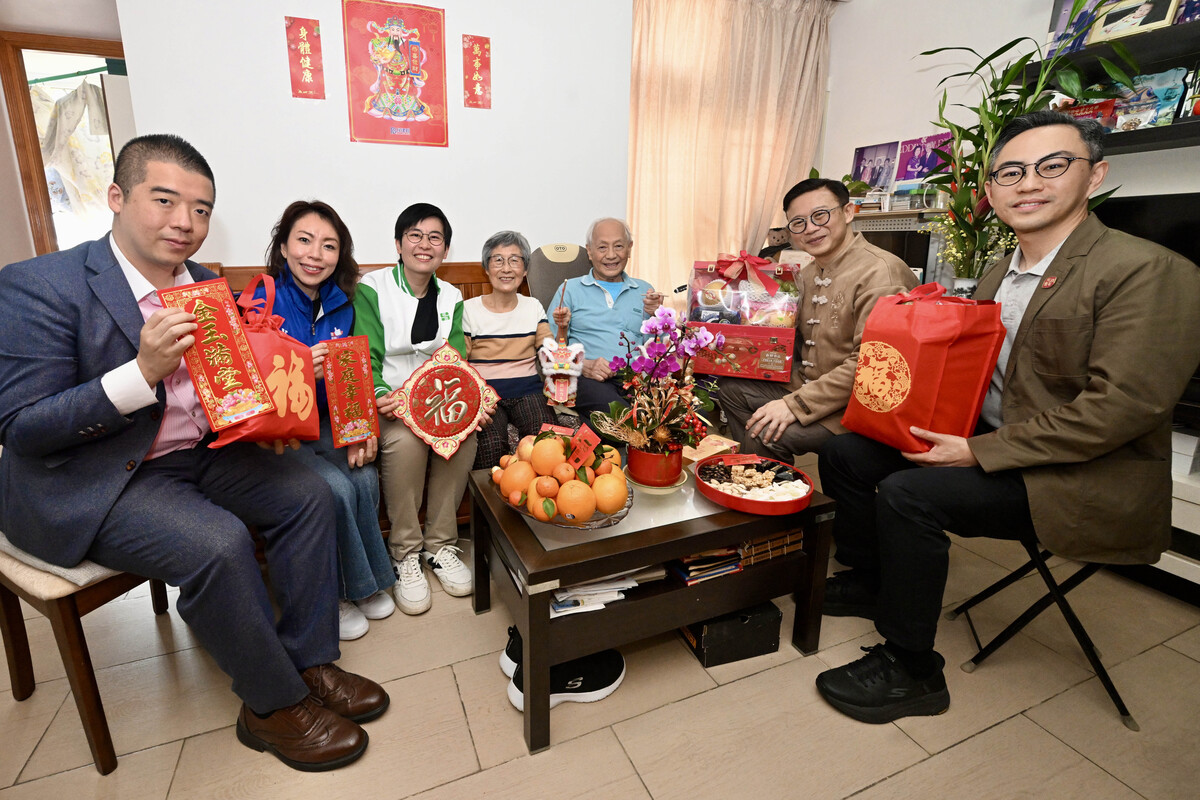 Principal officials today visited families and distributed gift bags in six districts – Sha Tin, Tsuen Wan, Islands, Kwun Tong, Eastern and Tai Po – ahead of the Lunar New Year.