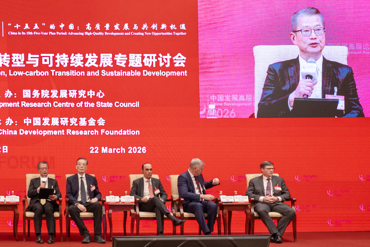Financial Secretary Paul Chan today attended the China Development Forum 2026 in Beijing and spoke at a symposium at the forum titled “Global Green, Low-carbon Transition and Sustainable Development”.