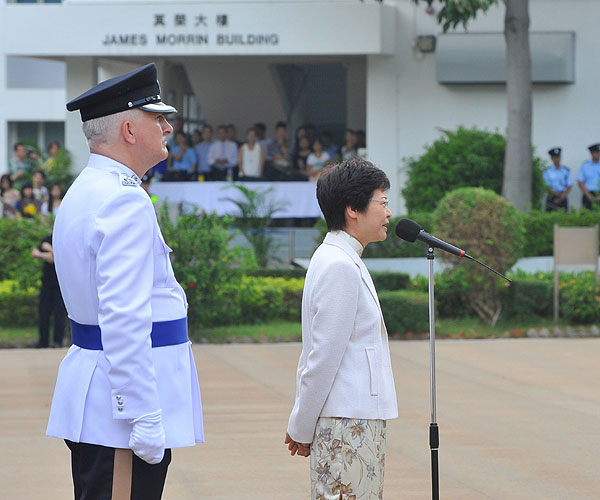 她表示,警隊不單在前線維持治安,亦要維護香港的底線,即香港的核心價值,透過警隊在前線維持治安,亦同時彰顯香港作為一個國際城市,自由,民主、開放、重視人權,合而為一。