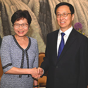 林鄭月娥(左)會晤浙江省省長袁家軍。