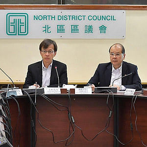 張建宗與區議員會面,聆聽他們對區內發展和關注議題的意見。之後在落馬洲警署瞭望處俯瞰落馬洲河套地區,聽取規劃署和土木工程拓展署人員介紹河套區發展規劃。