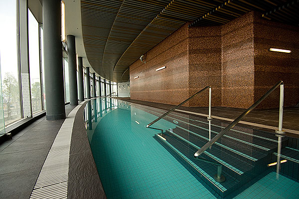 項目具綠色建築特色,教育休閒設施包括五個不同元素的園林花園、天台花園和雀鳥保護區;又有三個不同溫度的水療池,均以焚化污泥的餘熱保持恆溫。