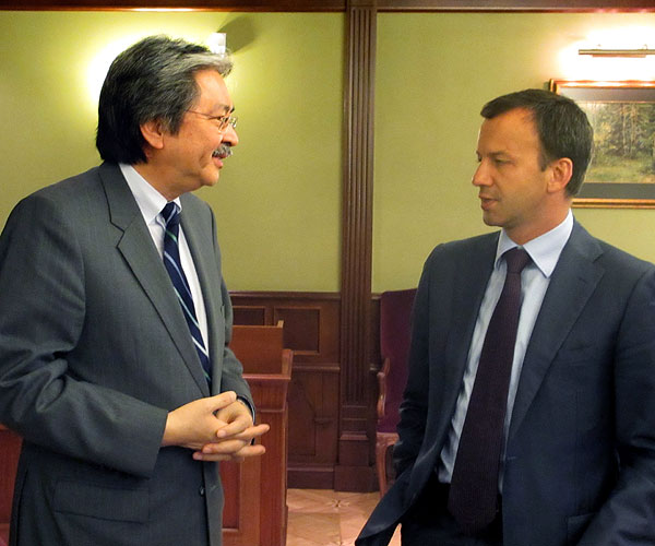 曾俊華8月29日禮節性拜會了主管能源、工業丶漁農業的俄羅斯副總理Arkady Dvorkovich,雙方認為歐債問題對兩地的影響逐漸明顯,並就未來國際石油產品和農產品的走勢及其對全球通脹的影響交換意見。