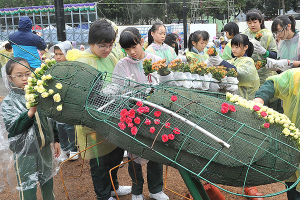 約800名來自27間學校的學生,今天(3月2日)在維多利亞公園參與「賽馬會學童鑲嵌花壇」活動,在約120名綠化義工的指導下,協助鑲嵌大型花壇「原野萬花筒」。