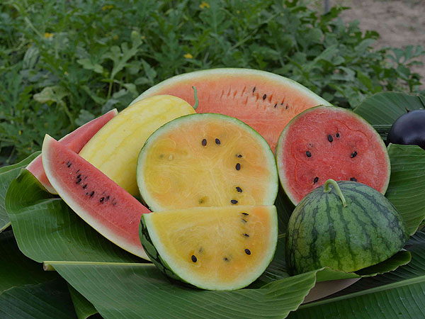 四款有機西瓜品種---「玉蘭」、「超甜黑美人168」、「黛安娜」和「鳳姬」是漁護署分別由泰國、澳洲、台灣和越南引進的優質品種。