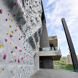 體育館設15米高戶外攀登牆,健兒可一顯身手。