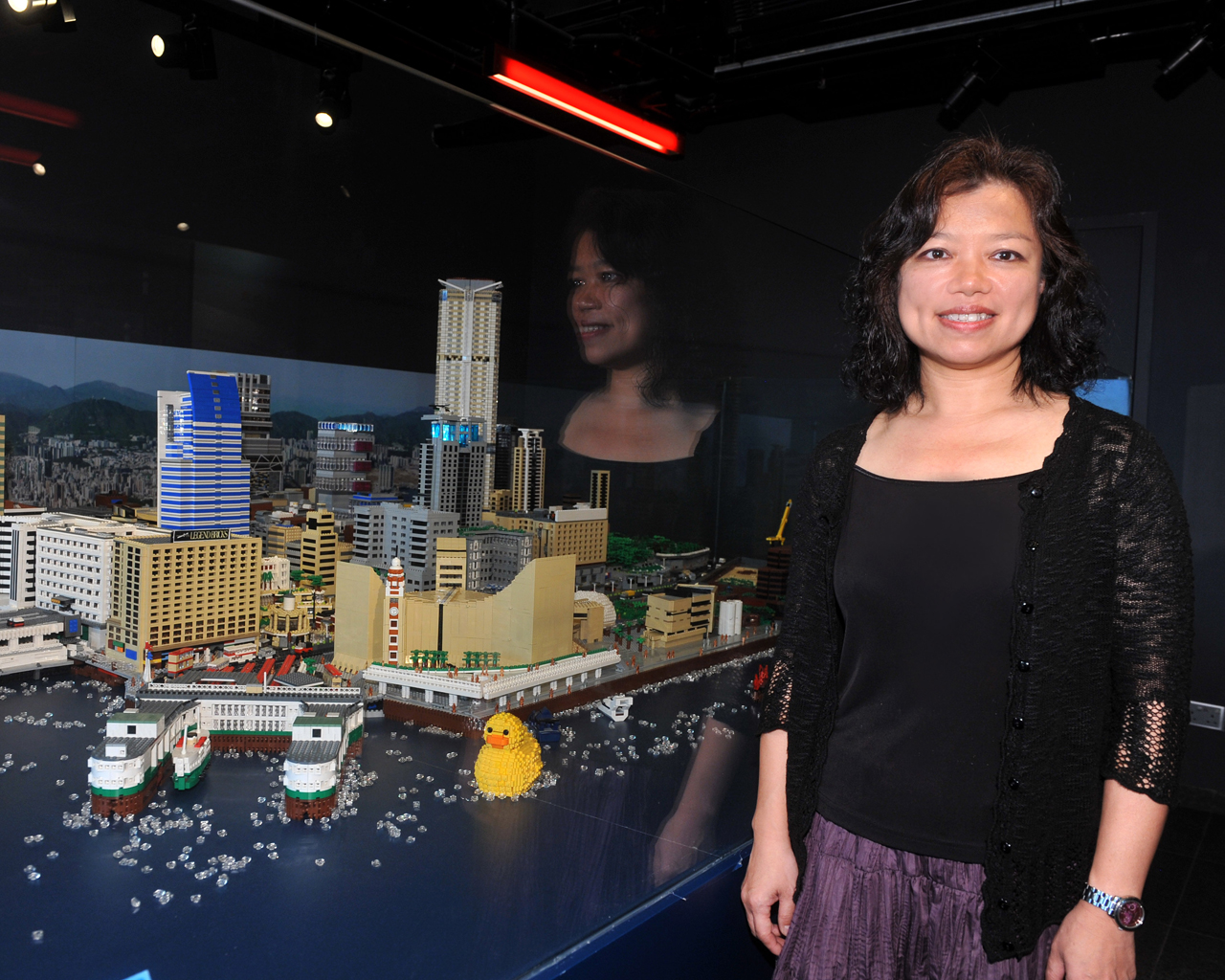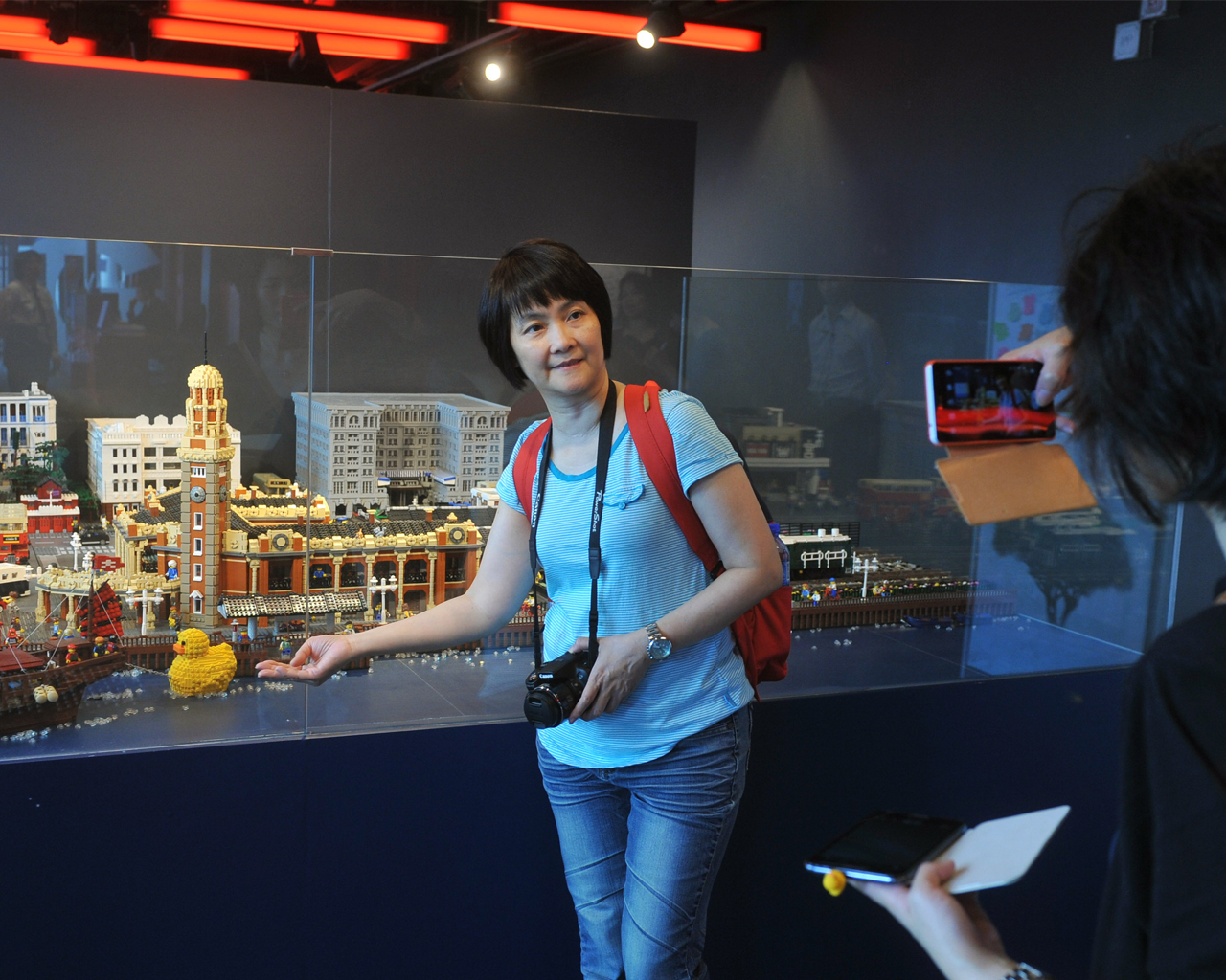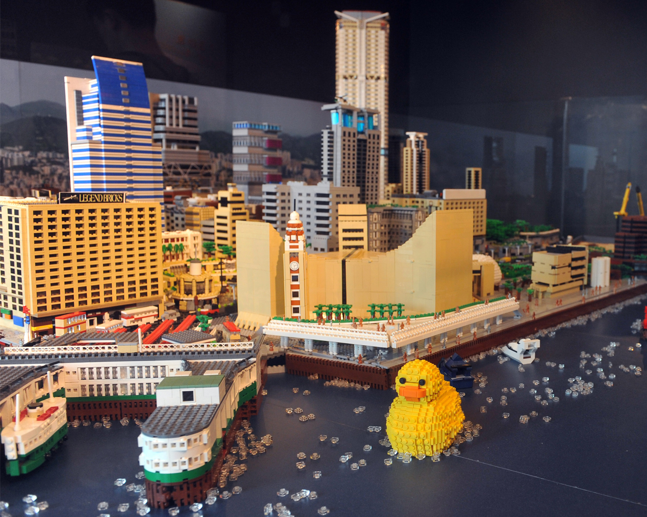 緊貼潮流: 在展城館展出的尖沙咀塑膠積木模型加入黃色橡皮鴨,與正在維港「暢泳」的巨型橡皮鴨相映成趣。