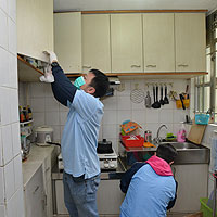 政府飛行服務隊義工黃耀康說,不同部隊的同事合作,房子各部分都可照顧到。各人分頭行動,懲教署的溫達文擦窗子,消防處的羅國輝和警務處的林學潛一起清潔浴室。林學潛笑言,他們紀律部隊人員個子高大,形象健康,長者自然放心。