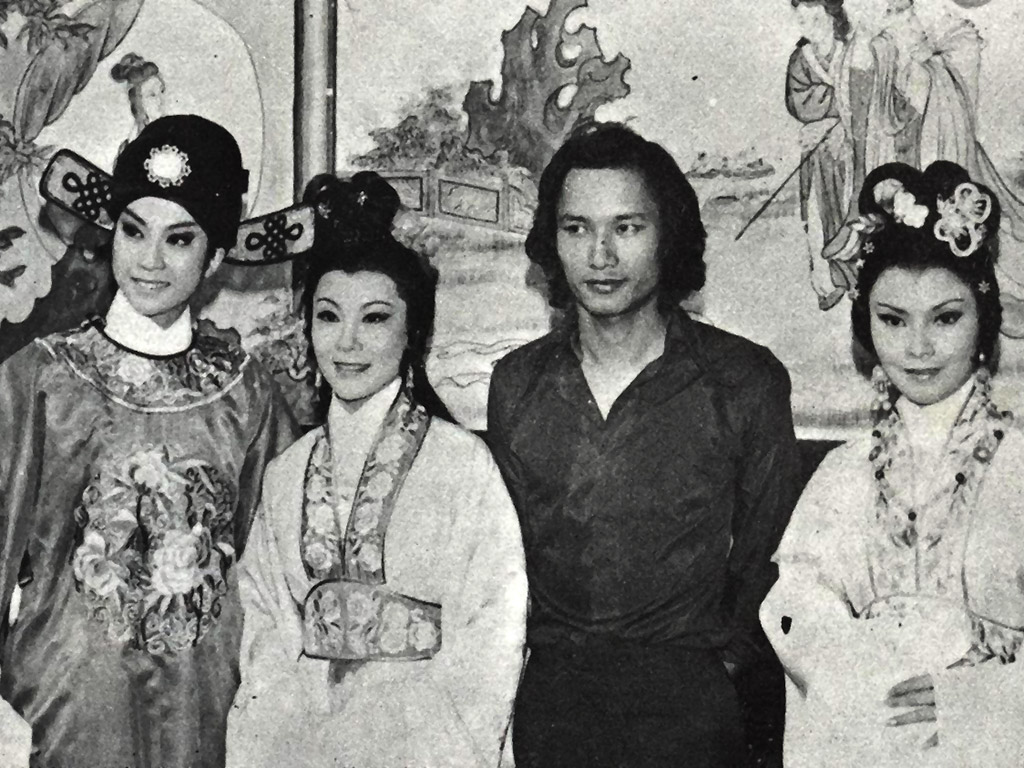 開創先河: 吳宇森(右二)於70年代,拍攝了嘉禾成立以來首部戲曲電影《帝女花》。(相片由香港電影資料館提供)