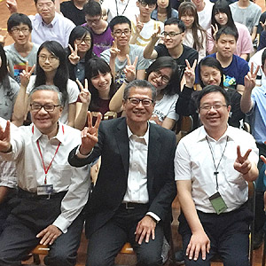 在我和師弟師妹的一個多小時分享中,我很高興見到他們思考籌劃自己的前程,也感到他們正努力裝備自己,為前面的考驗做好準備。當然,今天社會的競爭愈來愈激烈,同學們對前景難免感到焦慮,也擔憂上流空間不足。不過我相信,今天一代的年輕人的資質和創意都遠比我們的一代優勝,升學及就業選擇也更加豐富。但要把握不同的機會,積極籌劃和努力始終是成功的不二法門。只要小夥子有志氣、對自己保持信心,面對困難有不退縮的勇氣,努力不懈向理想奮進,將來必定能做出好成績。