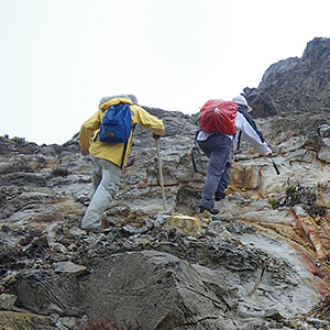 香港地質調查組人員攀山涉水到偏遠地區進行野外地質調查。
